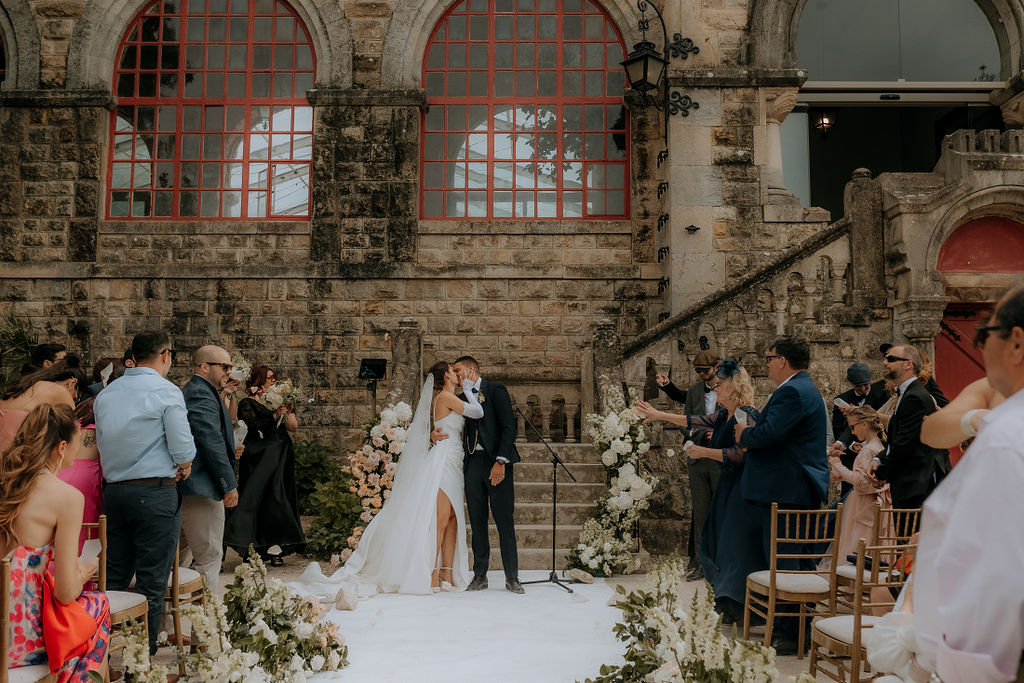 A Amandine e o André conheceram-se na Suiça e escolheram Lisboa para o seu casamento, a cidade onde atualmente residem.O Forte da Cruz, no Estoril, foi o cenário para este dia magnífico! A diversão foi muita, e ver os nossos clientes e os seus convidados a desfrutar plenamente deste dia diz-nos que a nossa missão foi cumprida!Obrigado por confiarem confiarem na nossa equipa para fazer parte deste dia incrível.
