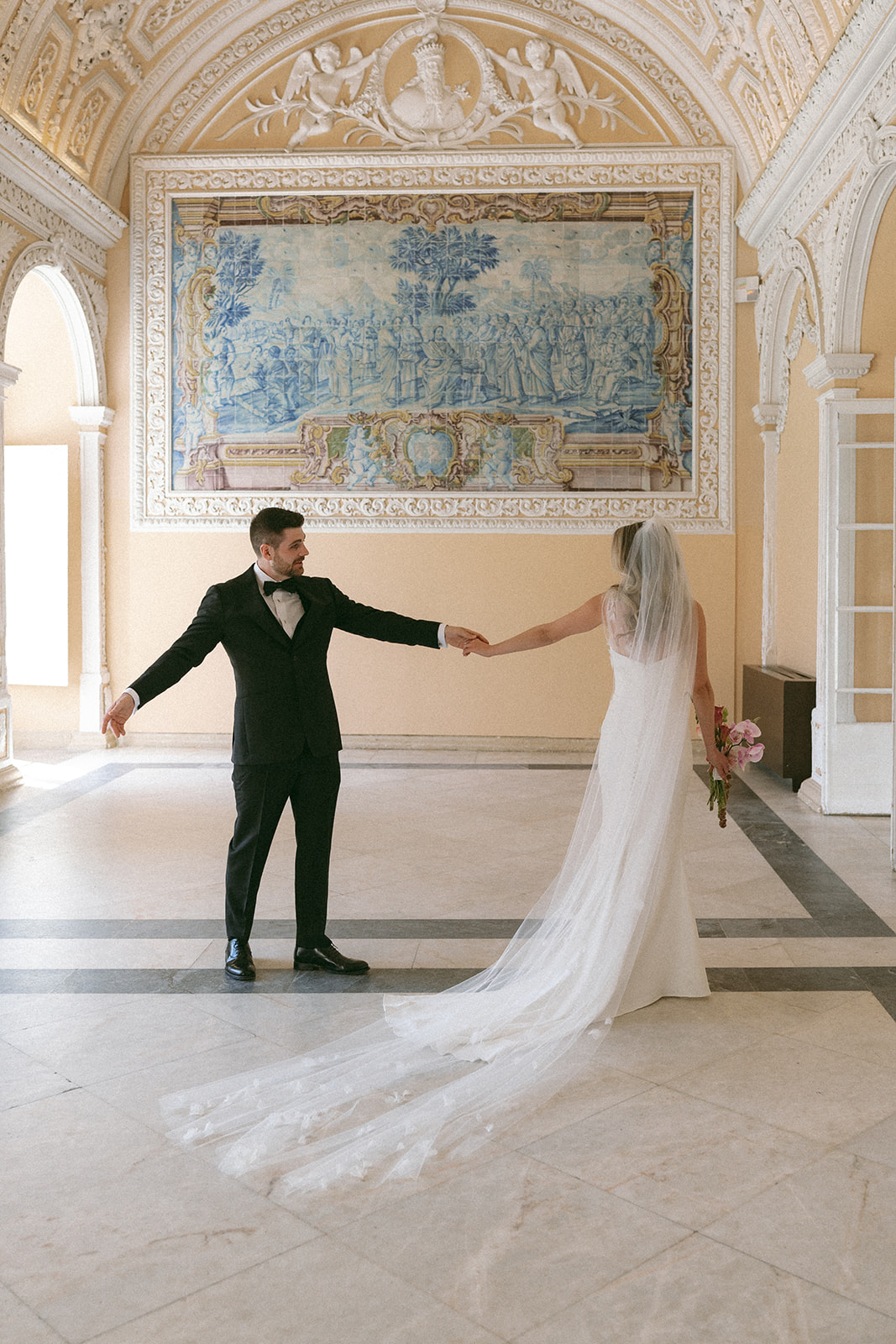 Their destination wedding in Sintra, at Penha Longa Resort, unfolded with effortless elegance and heartfelt joy. Light and emotional, the celebration mirrored the tenderness, warmth, and quiet romance that define their story.
