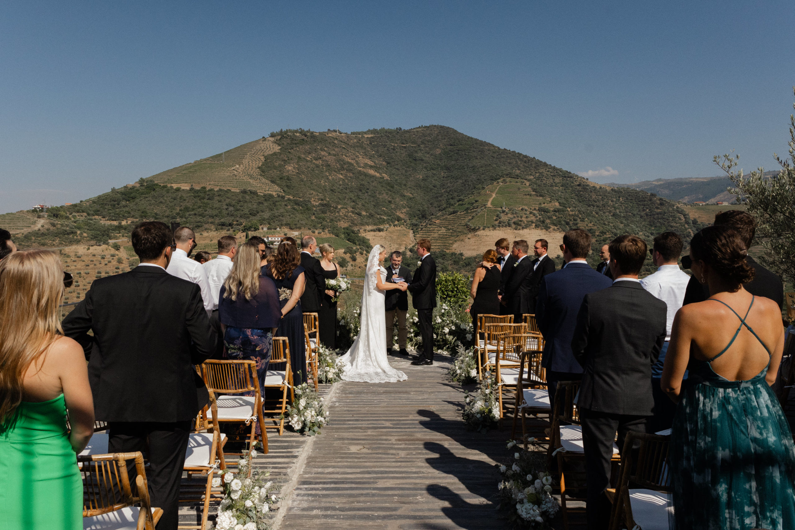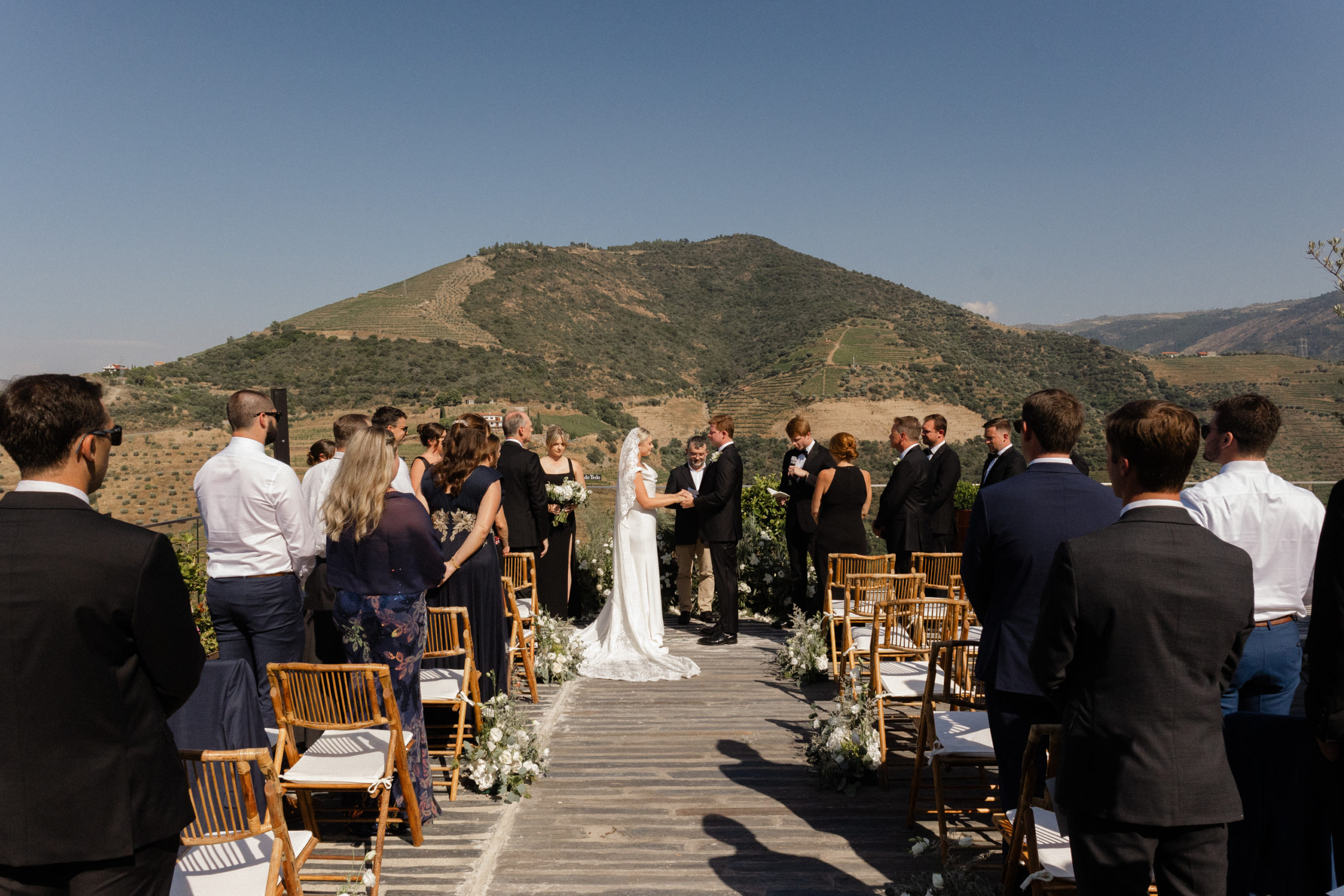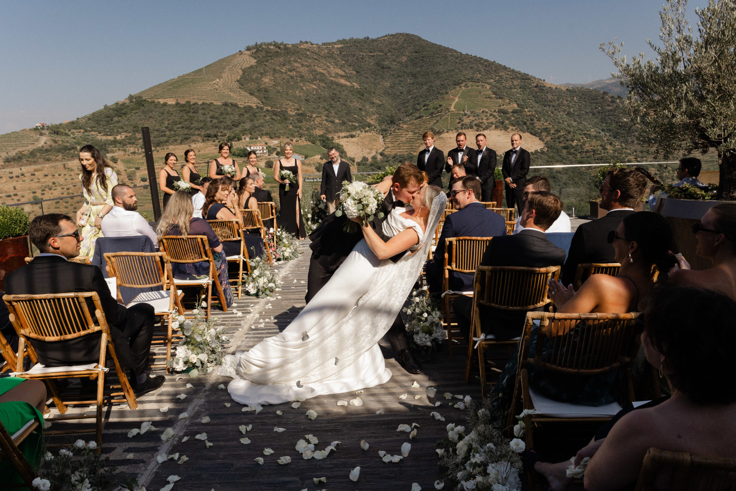 In the heart of Portugal’s Douro Valley, Haley and Ryan celebrated their love at Hotel Vila Galé Douro Vineyards, inspired by their shared passion for travel. Surrounded by lush vineyards and the serene Douro River, the venue offered the perfect mix of modern comfort and traditional charm. Their heartfelt ceremony under a clear blue sky set the tone for an unforgettable day. Guests enjoyed Portuguese cuisine and fine wines, experiencing the region’s rich flavors. As the stars lit up the night, Haley and Ryan danced under twinkling lights, embraced by love. Explore the gallery below to relive the magic of their wedding day and the beauty of new beginnings.