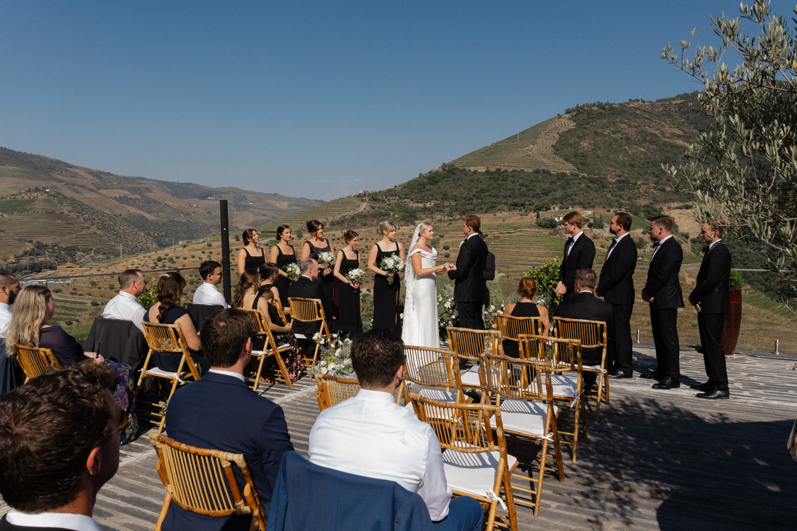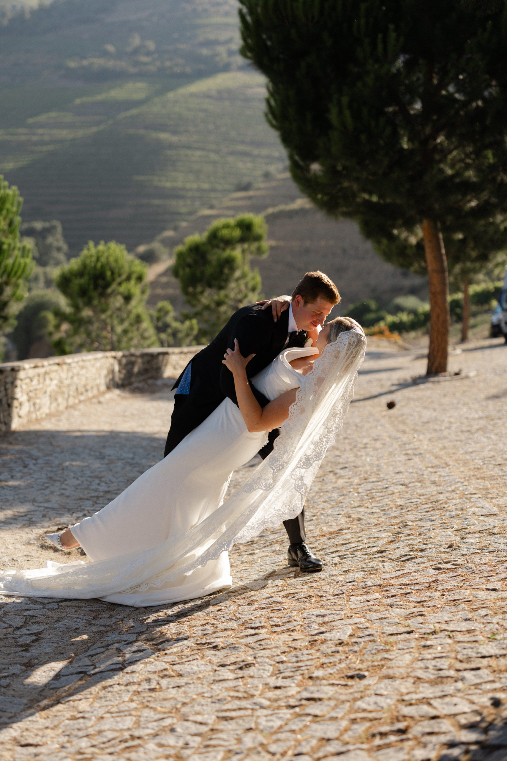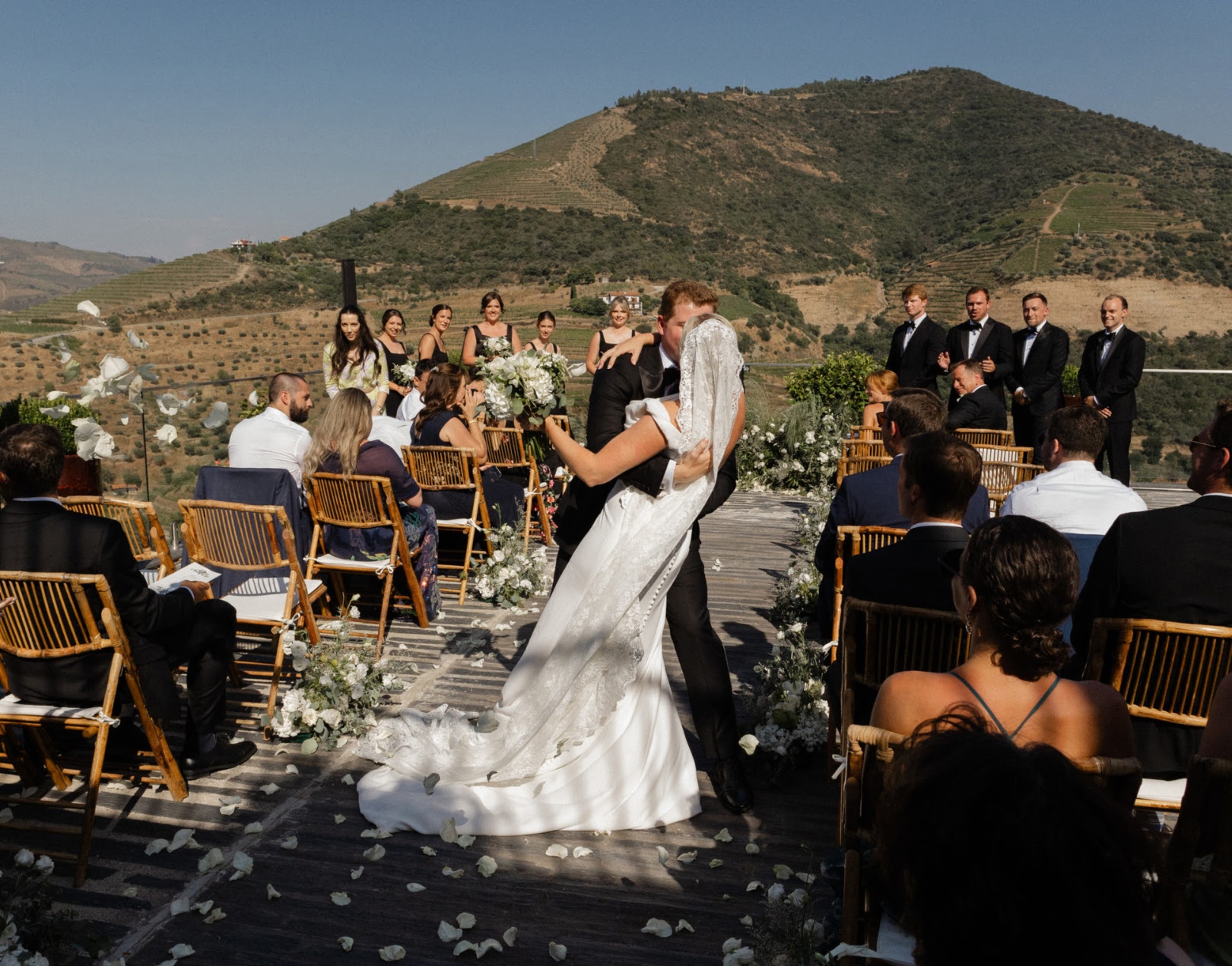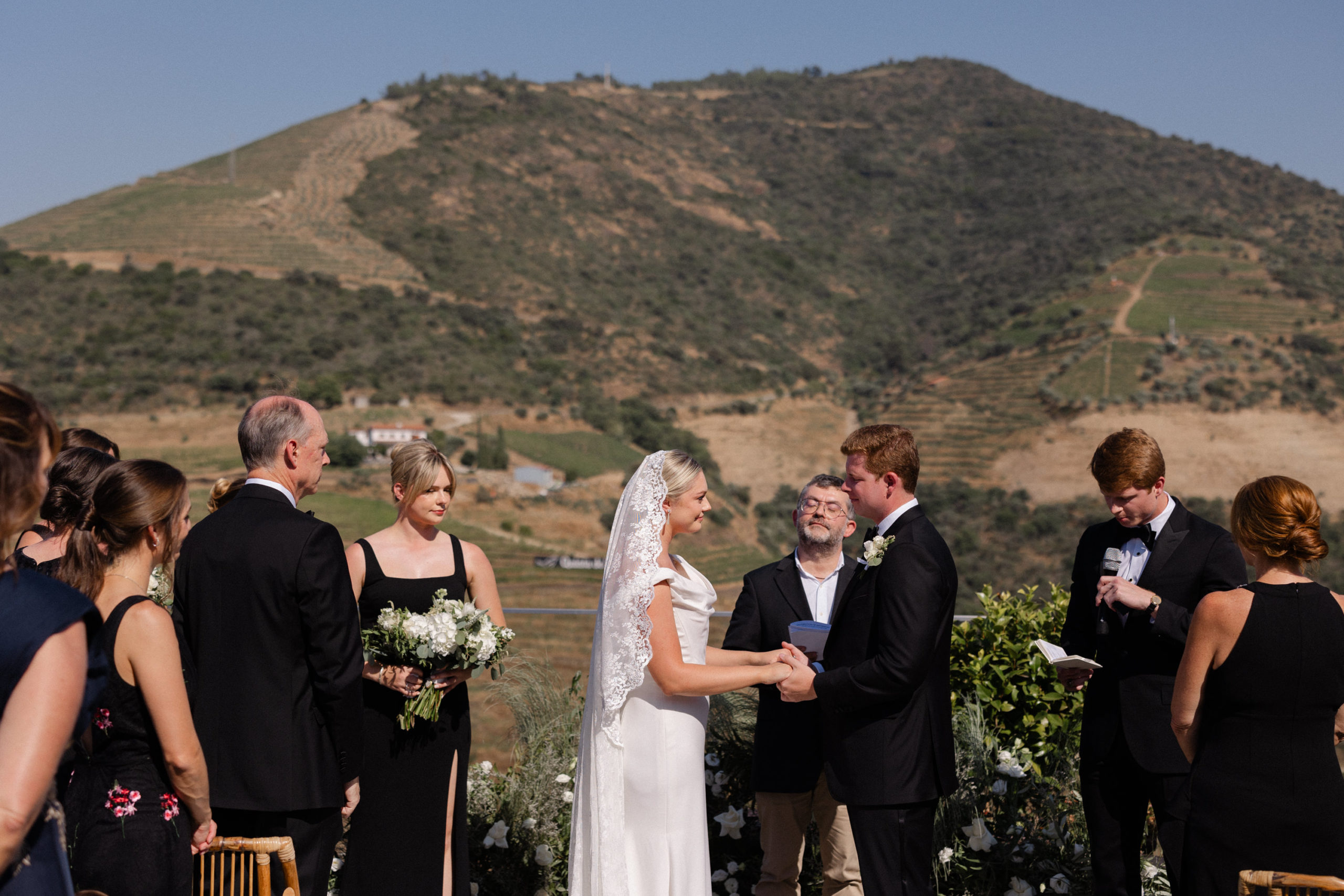 In the heart of Portugal’s Douro Valley, Haley and Ryan celebrated their love at Hotel Vila Galé Douro Vineyards, inspired by their shared passion for travel. Surrounded by lush vineyards and the serene Douro River, the venue offered the perfect mix of modern comfort and traditional charm. Their heartfelt ceremony under a clear blue sky set the tone for an unforgettable day. Guests enjoyed Portuguese cuisine and fine wines, experiencing the region’s rich flavors. As the stars lit up the night, Haley and Ryan danced under twinkling lights, embraced by love. Explore the gallery below to relive the magic of their wedding day and the beauty of new beginnings.