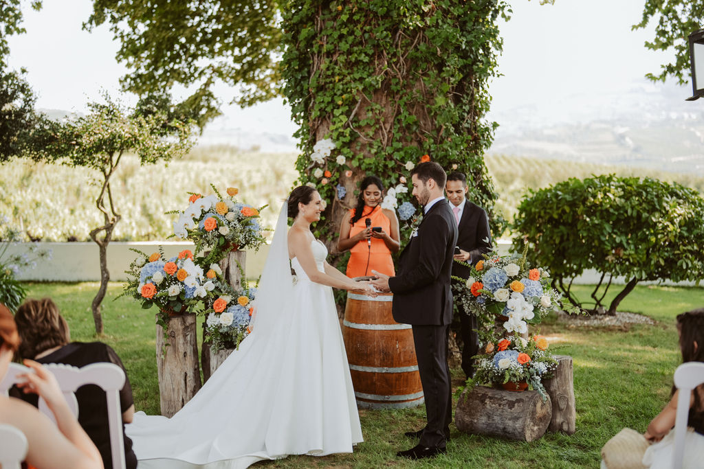 We are thrilled to share the enchanting wedding of Rachel and Kenny in the breathtaking Douro Valley. Portugal was the perfect choice, as Kenny’s family has roots there, making this destination wedding a beautiful blend of personal and cultural significance. The bilingual ceremony in both English and Portuguese allowed all guests to feel included and connected to the heartfelt vows exchanged by the couple.The celebration was vibrant and joyous, with traditional Portuguese music creating a lively atmosphere. Thoughtful decor honored Portuguese traditions, and guests enjoyed a sumptuous feast showcasing the best of Portuguese cuisine. Rachel and Kenny’s wedding was a beautiful tribute to their love and the rich culture of Portugal.